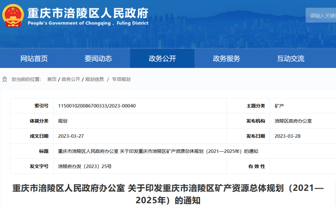 布局千万吨级砂石生产基地!年开采量将达2450万吨!重庆涪陵发布矿产资源规划