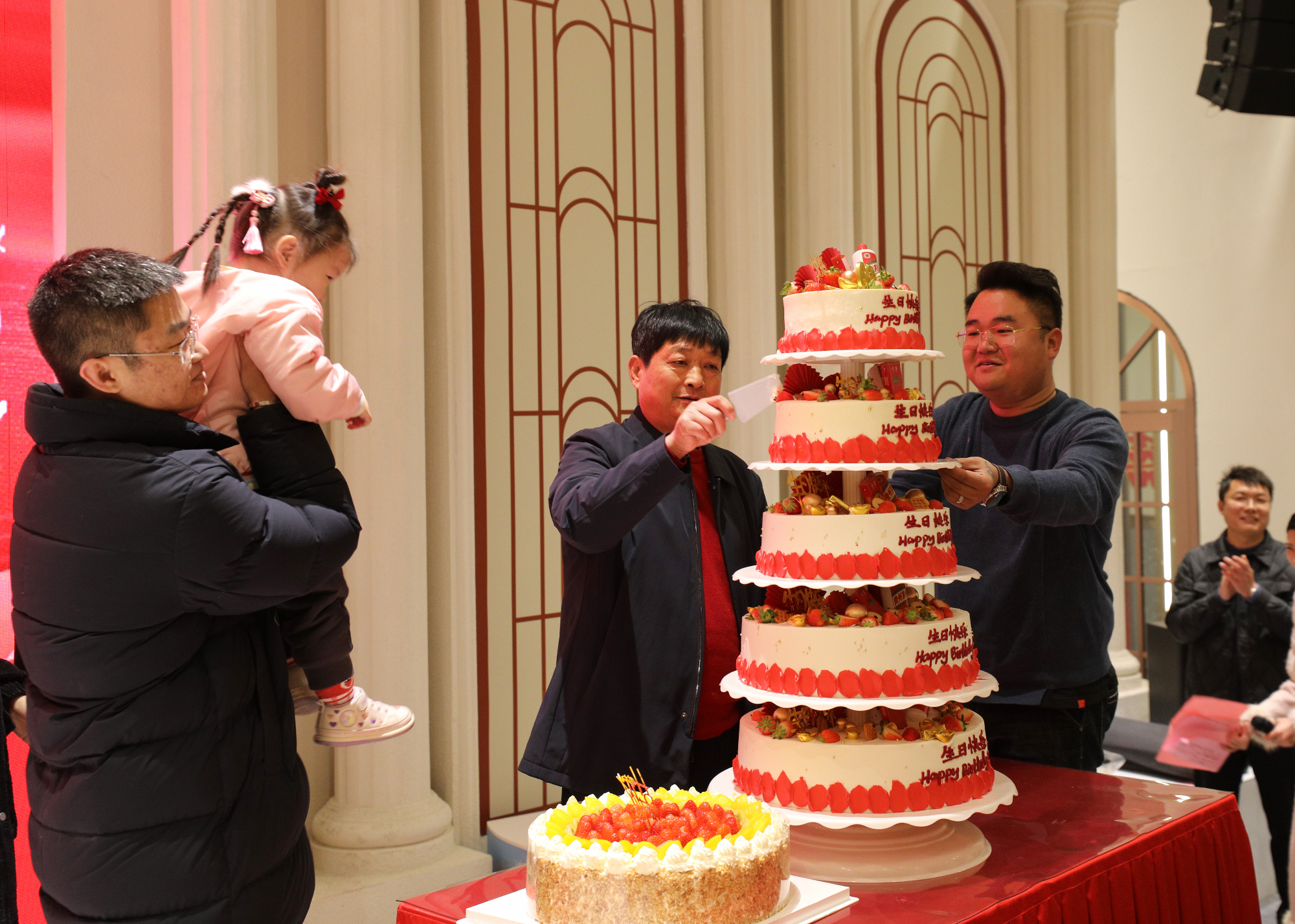 琳琅满目的佳肴与醇厚佳酿,交错间流淌着成功的欢愉。在欢乐的氛围中,付总一家人来到蛋糕前,为这场欢乐的庆典注入无限喜悦。